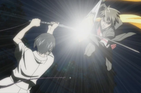While Shusui is practicing and subsequently beating all of his opponents at the kendo club, Ouka, Kazuki and Tokiko go to watch him. His teacher tells him to take it easy as he believes that he is already really good, he tells his teacher that he doesn't care about winning tournaments and that he just wants to become as strong as he possibly can. Kazuki hears this and likens it to his own resolve, he challenges Shusui. Despite his teacher's objections due to him not being in the club, Shusui accepts his challenge. During the fight Shusui realizes that Kazuki is new to kendo but that he is a skilled fighter and tells him that he won't hold back as he beats Kazuki with the reverse do technique, Kazuki blocks it but it managed to break through his hilt anyway. Afterwards he thanks Kazuki for giving him an excellent workout and tells him that he is the first person to ever block his reverse do. He asks Kazuki why he volunteered to spar with him, Kazuki tells him that it is because they both have the same reason to fight, he then asks why wants to become stronger but Kazuki tells him it is a secret, in response Shusui tells him that his reasons are a secret too. Shusui formally introduces him and asks Kazuki if he would like to spar again, to which Kazuki accepts.
