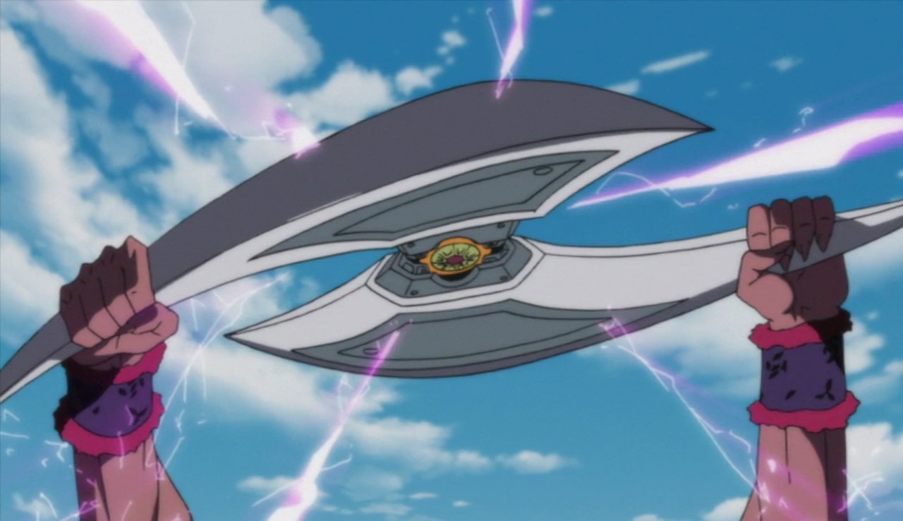 Victor possesses Black Kakugane I which takes the form of a giant silver and black war-axe. The axe is comprised of two blades connected at the top of each blade, Victor usually uses one of the blades to hold the axe.