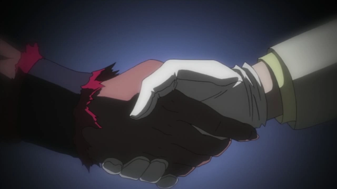 Kazuki quickly counters by summoning back Black Kakugane III which flies back to him, slicing off Victor's arm in the process. Kazuki then grabs the arm and absorbs it allowing him to regenerate his own arm back. Victor stays afloat in the air and quickly regenerates his arm stating that with both of them being Victorized, the battle wont be over quickly. He tells Kazuki that their battle is over and decides to see how much the world has changed over the last century, telling him that he has plenty of time to kill him and everything related to alchemy. He finally warns Kazuki that he will suffer as he did a hundred years ago and tells him to prepare himself before flying away.