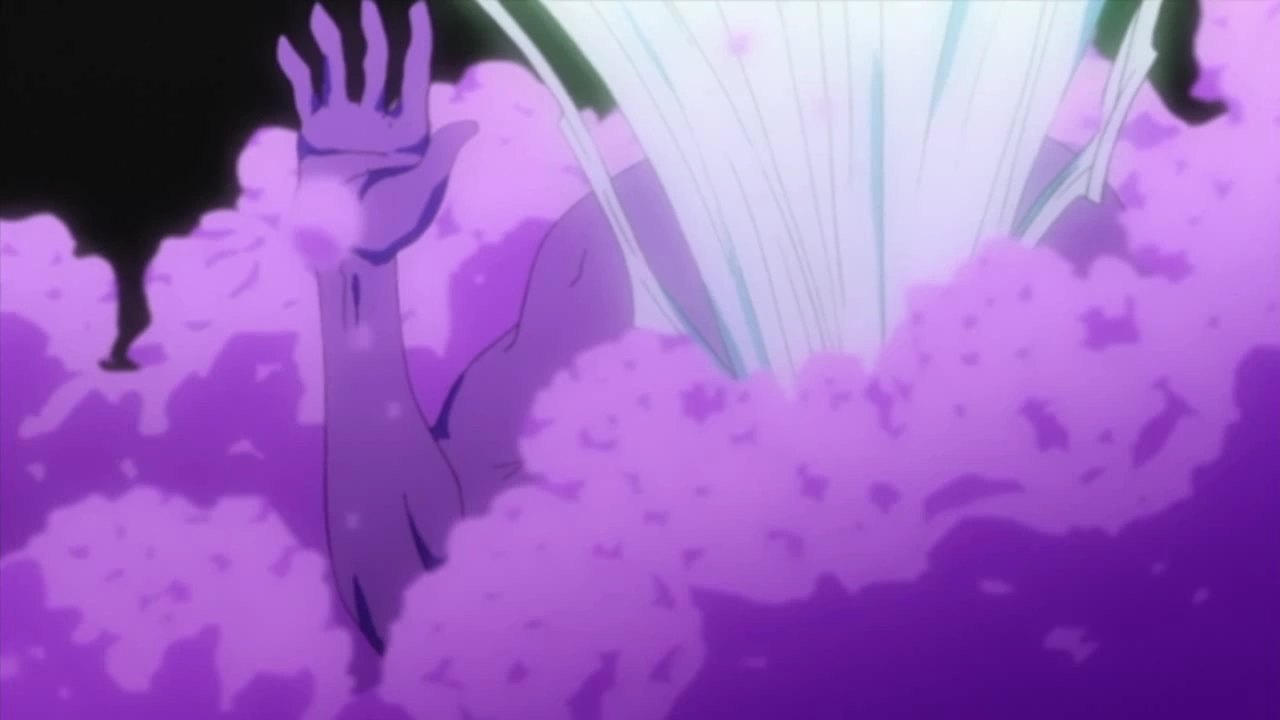 When Dr. Butterfly attacks Ginsei Private Academy, the alarm on the restoration flask goes off as Victor begins to awaken. As this happens multiple metallic tentacle-like arms come out from the flask and attach themselves to various parts of the school. This initiates Victor's energy drain which drains the life force of the students inside so that he can feed and eventually fully awaken.